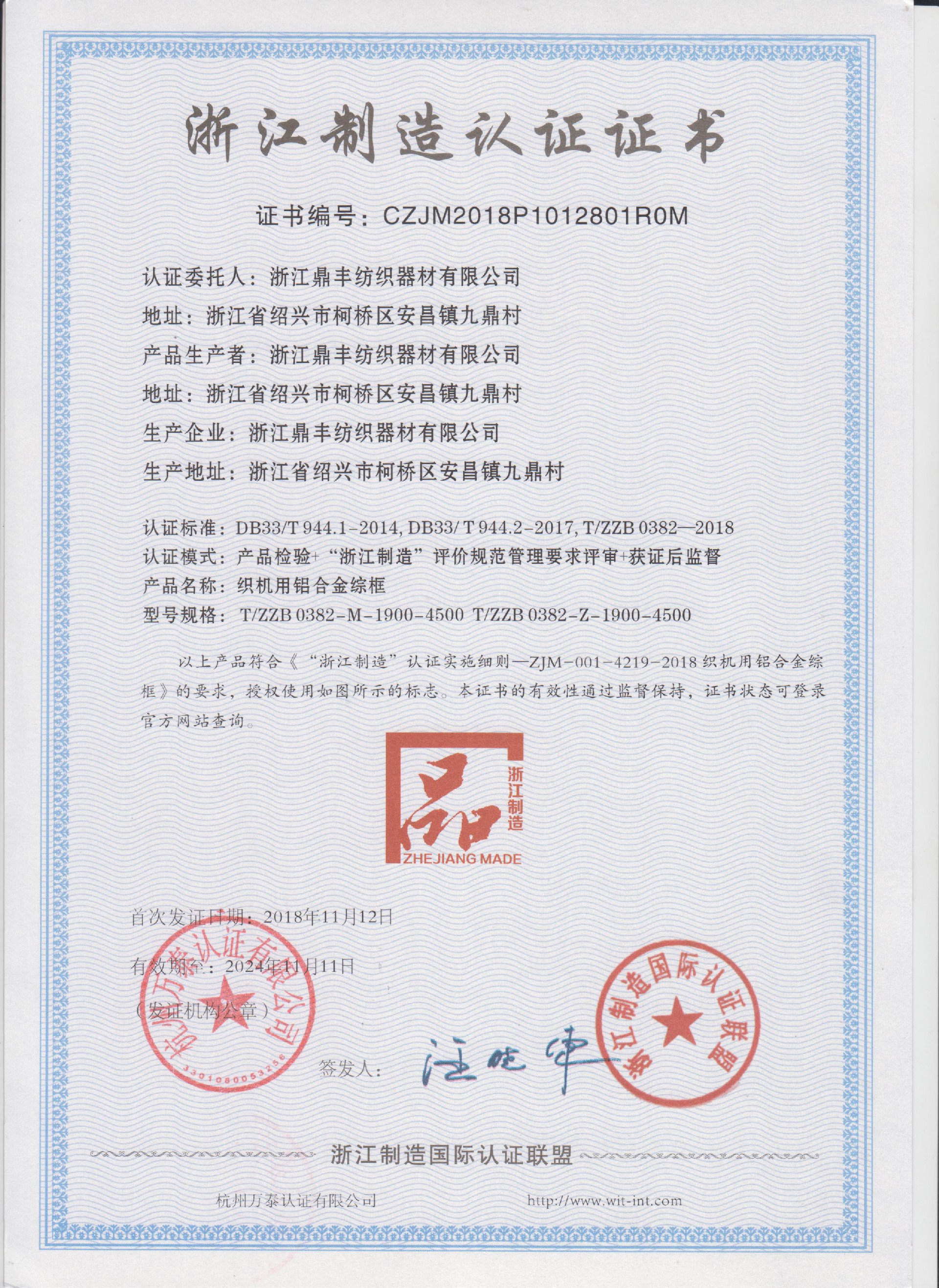 1、貴公司是一家專業(yè)生產(chǎn)各類無梭織機鋁合金鋼筘、綜框、鋼片綜、停經(jīng)片、經(jīng)軸、織軸和卷布輥等產(chǎn)品及配件的民營企業(yè)。公司成立30多年迅速發(fā)展、占領(lǐng)市場的秘決是什么?余定雅:是高品質(zhì)的產(chǎn)品,完善的售后服務和大規(guī)模的生產(chǎn)能力保證了浙江鼎豐紡織器材有限公司的產(chǎn)品銷售量在國內(nèi)獨占鰲頭。為了與全球市場經(jīng)濟接軌,鼎豐紡